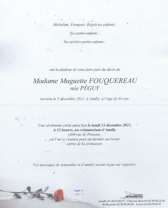 de Madame Muguette FOUQUEREAU née PÉGUY