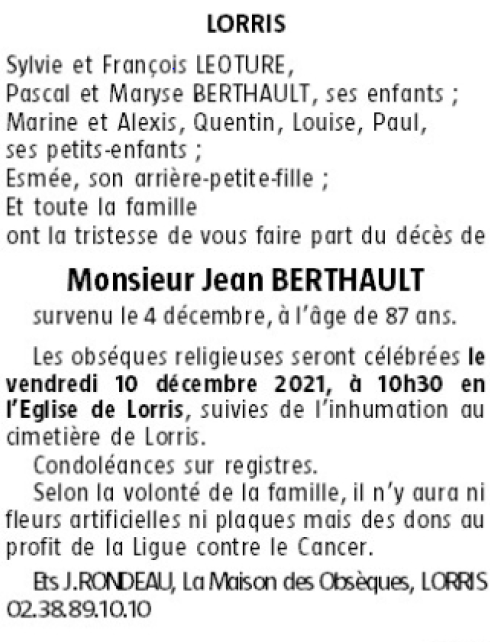 Cet espace « condoléances » est dédié à la mémoire de Monsieur Jean-Michel BERTHAULT.