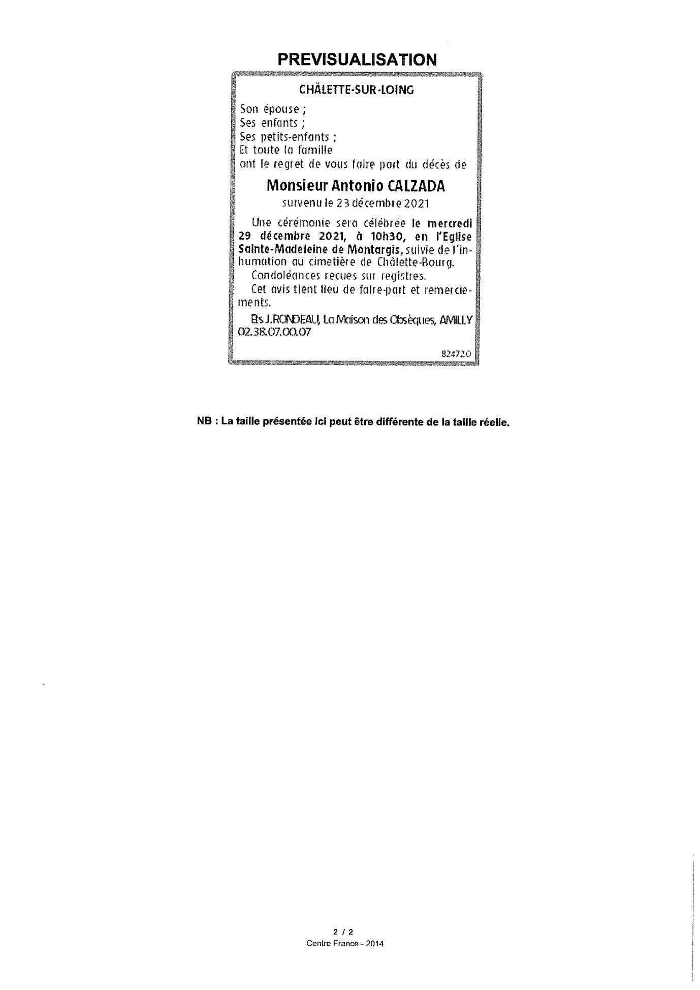 Cet espace « condoléances » est dédié à la mémoire de Monsieur Antonio CALZADA.