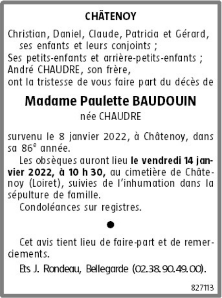 de Madame Paulette BAUDOUIN née CHAUDRE
