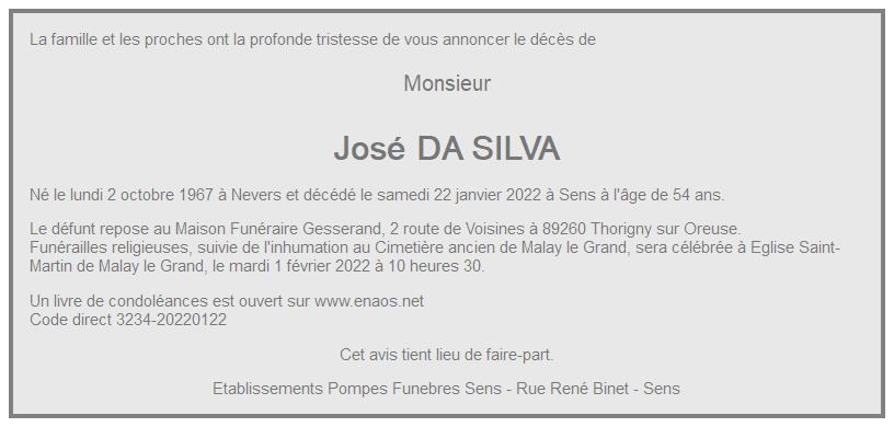 Cet espace « condoléances » est dédié à la mémoire de Monsieur José DA SILVA.