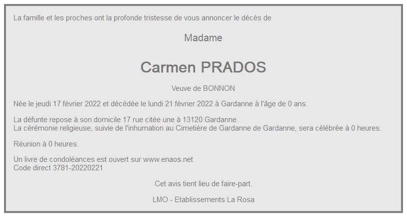 de Madame Carmen BONNON née PRADOS