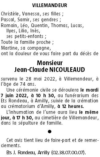 Cet espace « condoléances » est dédié à la mémoire de Monsieur Jean-Claude NICOULEAUD.