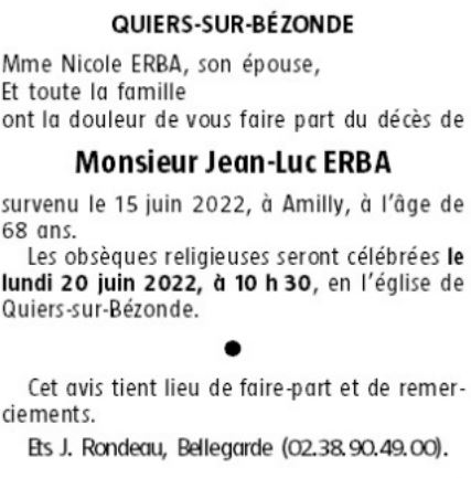 Cet espace « condoléances » est dédié à la mémoire de Monsieur Jean-Luc ERBA.