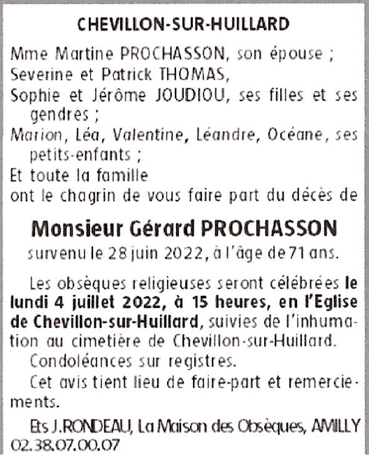 Cet espace « condoléances » est dédié à la mémoire de Monsieur Gérard PROCHASSON.