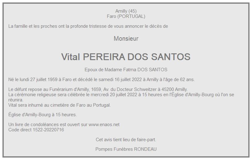Je suis très triste de le voir partir, mais très heureux de l’avoir connu, un homme avec le cœur sur la main, Vital va vraiment nous manquer. Je partage la douleur de toute sa famille et garde en moi le souvenir de nos meilleurs moments passés ensemble pour ne jamais l’oublier. J’adresse mes très sincères condoléances à toute sa famille.