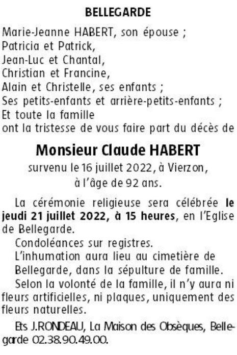 Cet espace « condoléances » est dédié à la mémoire de Monsieur Claude HABERT.