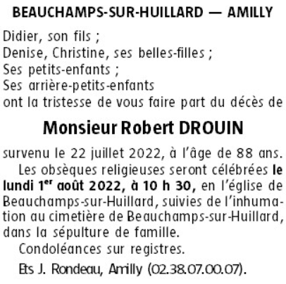 Cet espace « condoléances » est dédié à la mémoire de Monsieur Robert DROUIN.