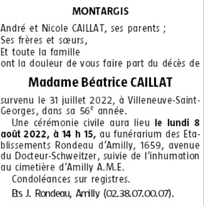 Cet espace « condoléances » est dédié à la mémoire de Madame Béatrice CAILLAT.