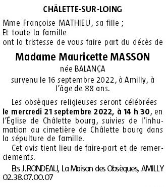 de Madame Mauricette MASSON née BALANÇA