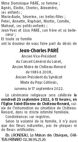 de Monsieur Jean-Charles PARÉ