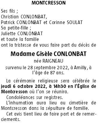 de Madame Gisèle CONLONBAT née RAIGNEAU