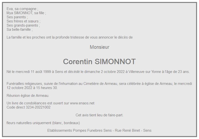 Cet espace « condoléances » est dédié à la mémoire de Monsieur Corentin SIMONNOT.