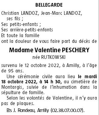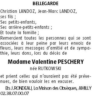 de Madame Valentine PESCHERY née RUTKOWSKI