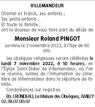 de Monsieur Roland PINGOT