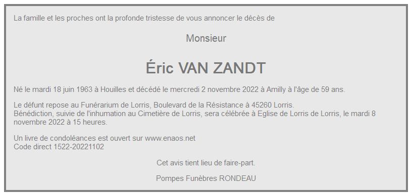 de Monsieur Éric VAN ZANDT
