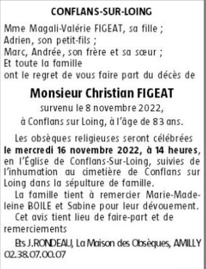 Cet espace « condoléances » est dédié à la mémoire de Monsieur Christian FIGEAT.