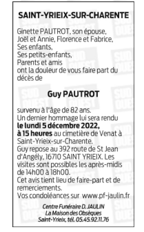 Cet espace « condoléances » est dédié à la mémoire de Monsieur Guy PAUTROT.