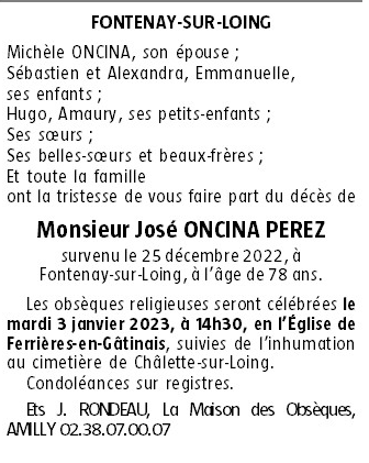 Cet espace « condoléances » est dédié à la mémoire de Monsieur José ONCINA PEREZ.