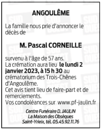 Cet espace « condoléances » est dédié à la mémoire de Monsieur Pascal CORNEILLE.
