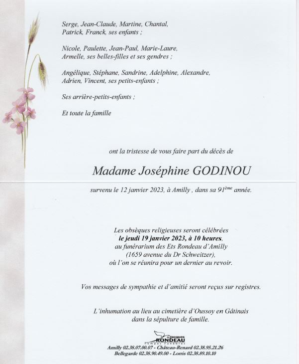Cet espace « condoléances » est dédié à la mémoire de Madame Joséphine GODINOU.