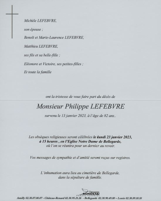 Cet espace « condoléances » est dédié à la mémoire de Monsieur Philippe LEFEBVRE.