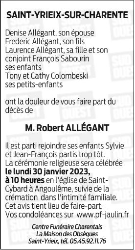 Cet espace « condoléances » est dédié à la mémoire de Monsieur Robert ALLEGANT.