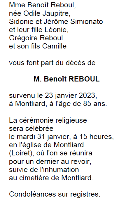 Cet espace « condoléances » est dédié à la mémoire de Monsieur Benoît REBOUL.
