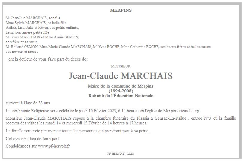 de Monsieur Jean-Claude MARCHAIS