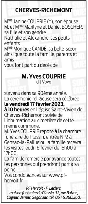 Cet espace « condoléances » est dédié à la mémoire de Monsieur Yves COUPRIE.