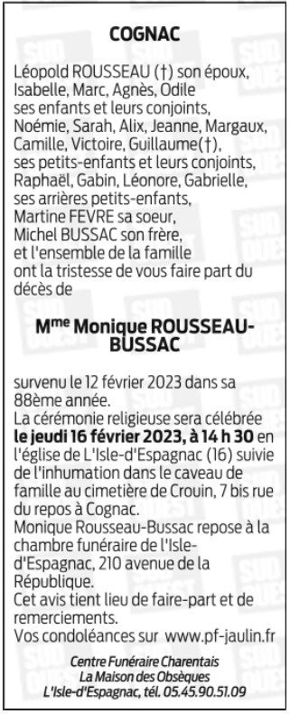 de Madame MONIQUE ROUSSEAU née BUSSAC