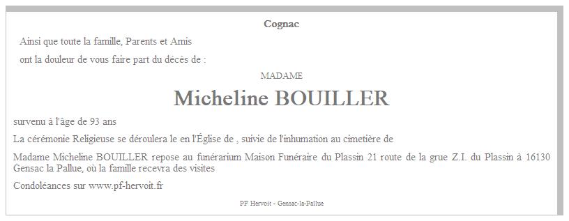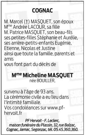 de Madame Micheline MASQUET née BOUILLER