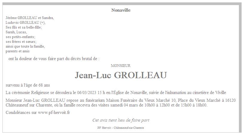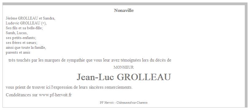 Cet espace « condoléances » est dédié à la mémoire de Monsieur Jean-Luc GROLLEAU.