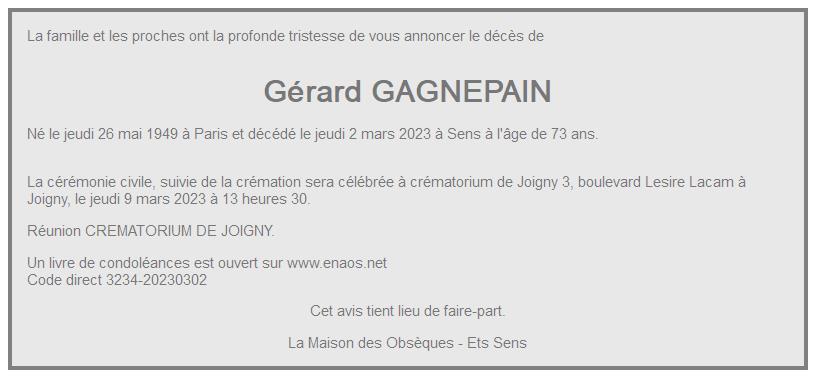 Cet espace « condoléances » est dédié à la mémoire de Monsieur Gérard GAGNEPAIN.