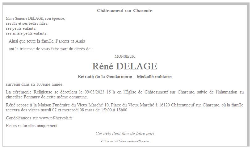 de Monsieur Réné DELAGE