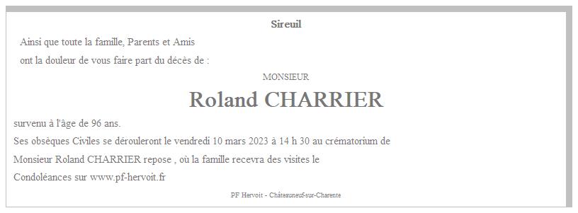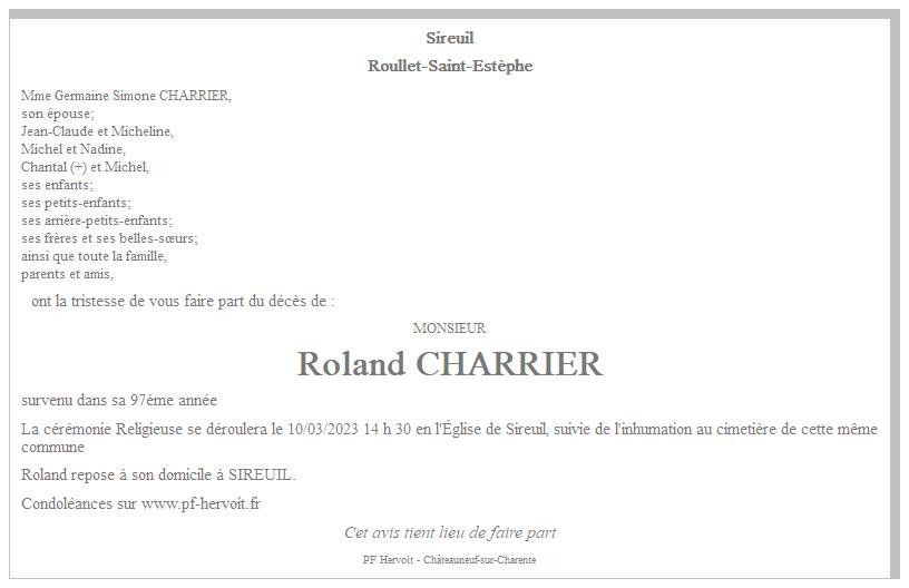 Cet espace « condoléances » est dédié à la mémoire de Monsieur Roland CHARRIER.
