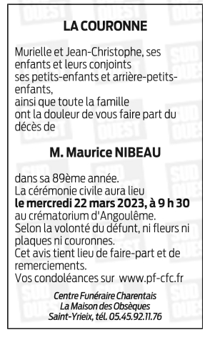 Cet espace « condoléances » est dédié à la mémoire de Monsieur Maurice NIBEAU.