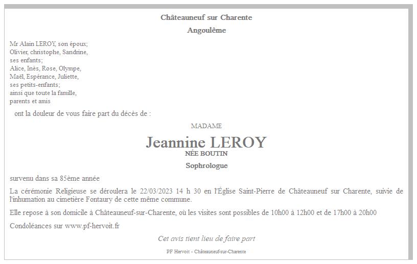 de Madame Jeannine LEROY née BOUTIN