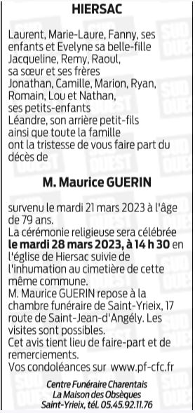 de Monsieur Maurice GUERIN