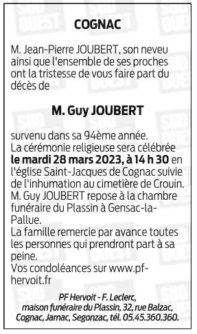 Cet espace « condoléances » est dédié à la mémoire de Monsieur Guy JOUBERT.