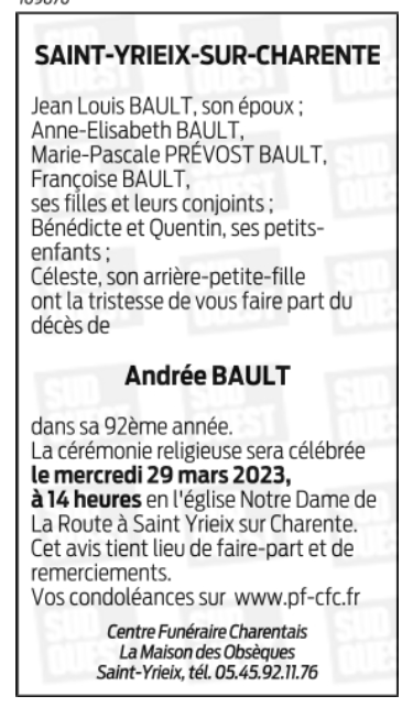 de Madame Andrée BAULT née TRUFFY