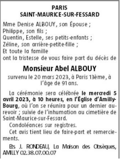 Cet espace « condoléances » est dédié à la mémoire de Monsieur Abel ALBOUY.