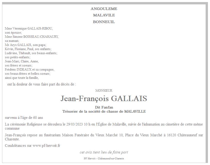 de Monsieur Jean-François GALLAIS