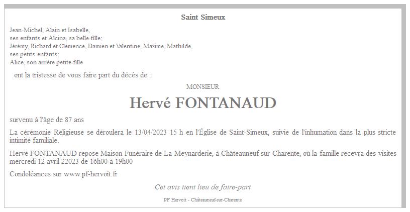 Cet espace « condoléances » est dédié à la mémoire de Monsieur Hervé FONTANAUD.