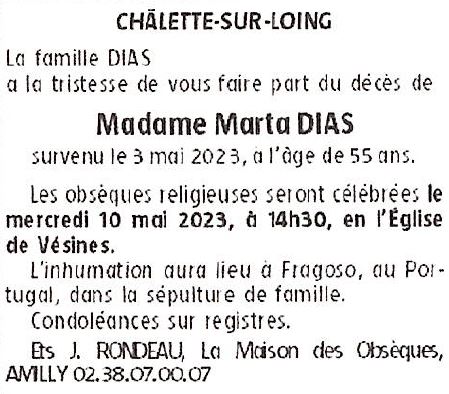 Cet espace « condoléances » est dédié à la mémoire de Madame Marta DIAS.