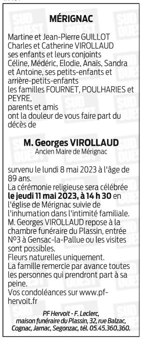 Cet espace « condoléances » est dédié à la mémoire de Monsieur Georges VIROLLAUD.