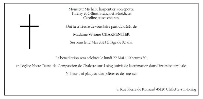 de Madame Viviane CHARPENTIER née GOULAKIS