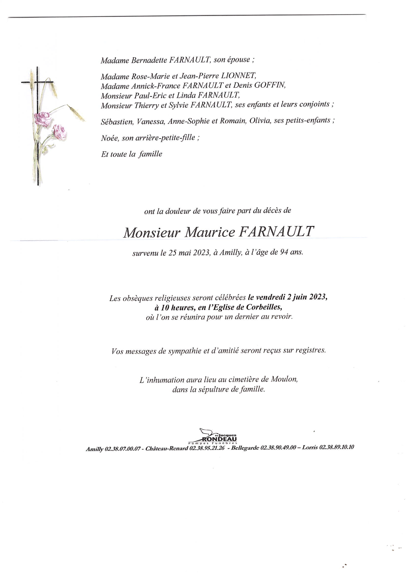 Cet espace « condoléances » est dédié à la mémoire de Monsieur Maurice FARNAULT.