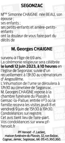 Cet espace « condoléances » est dédié à la mémoire de Monsieur Georges CHAIGNE.