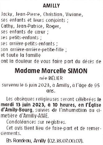 Cet espace « condoléances » est dédié à la mémoire de Madame Marcelle SIMON née BÉLIER.